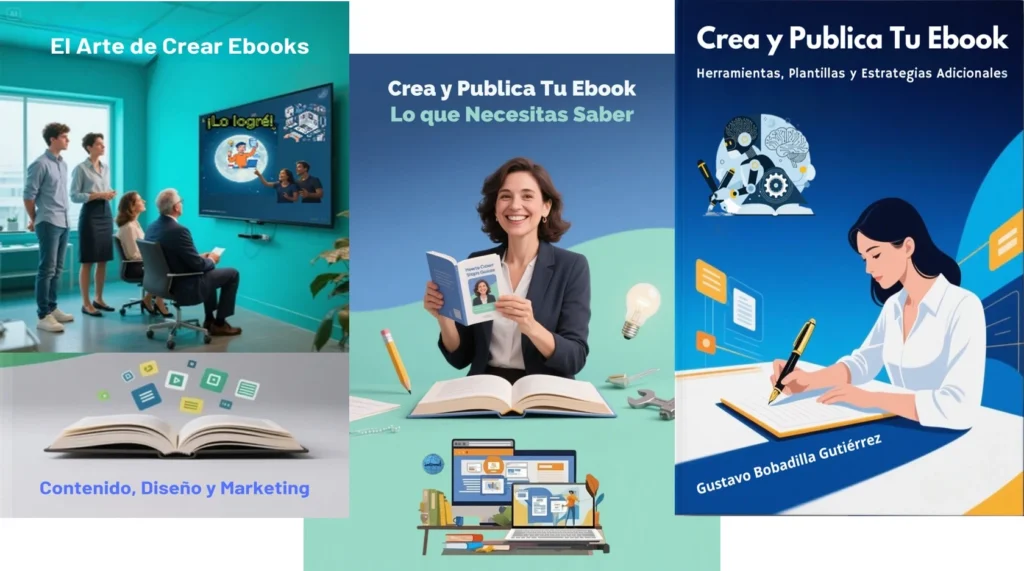 Por la compra de la Guía completa para Crear Videos con IA, llévate GRATIS 3 ebooks extra sobre cómo crear y publicar tu propio ebook profesional.